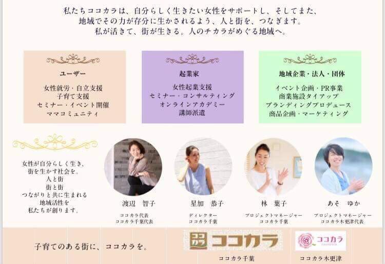 ココカラは、女性の活躍を願う子育て女性4名で結成されている支援団体です。